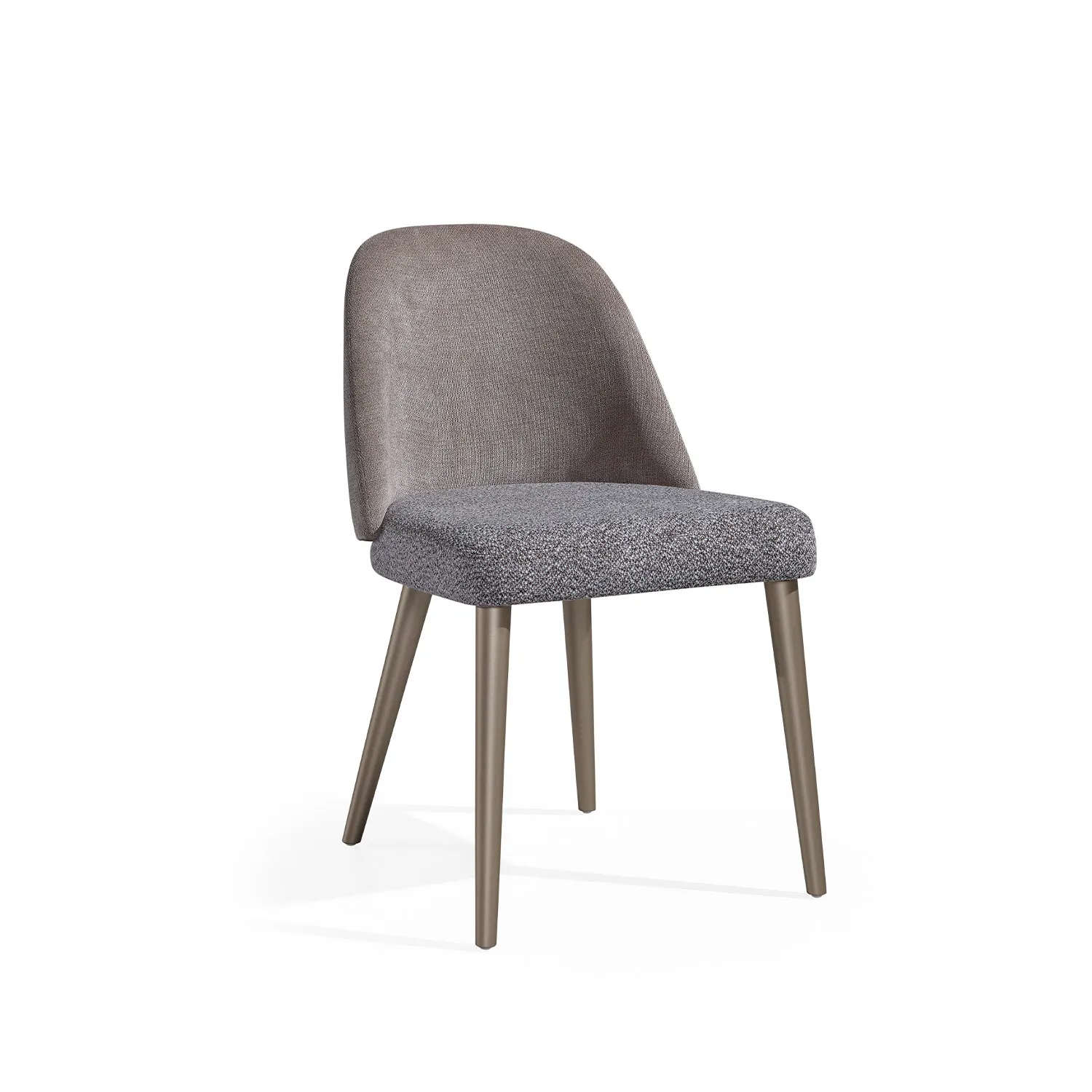O assento estofado, com acabamento texturizado, cria um contraste subtil com o encosto em tecido liso, conferindo-lhe um toque sofisticado e atual. Os pés em acabamento lacado bege acrescentam leveza visual e um apontamento moderno que se integra facilmente em diferentes estilos de decoração — do minimalista ao mais acolhedor.